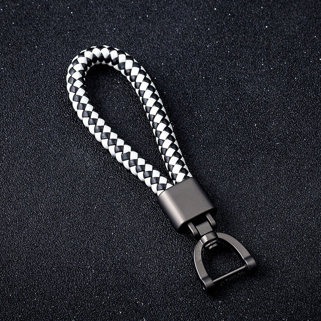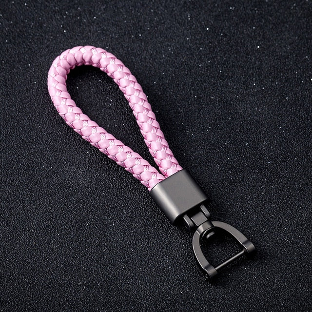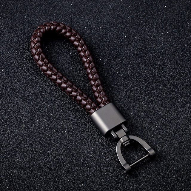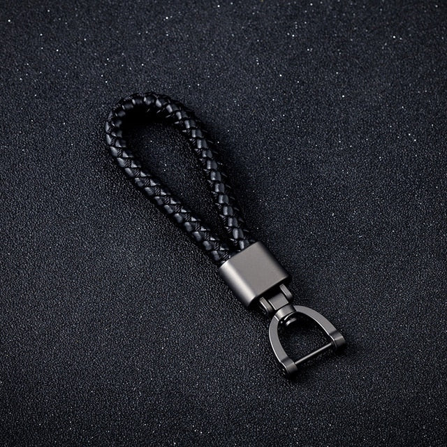 High-Grade Hand Woven Leather Car Keychain 360 Degree Rotating Horseshoe Buckle Jewelry Key Rings Holder Genuine Bag Pendant